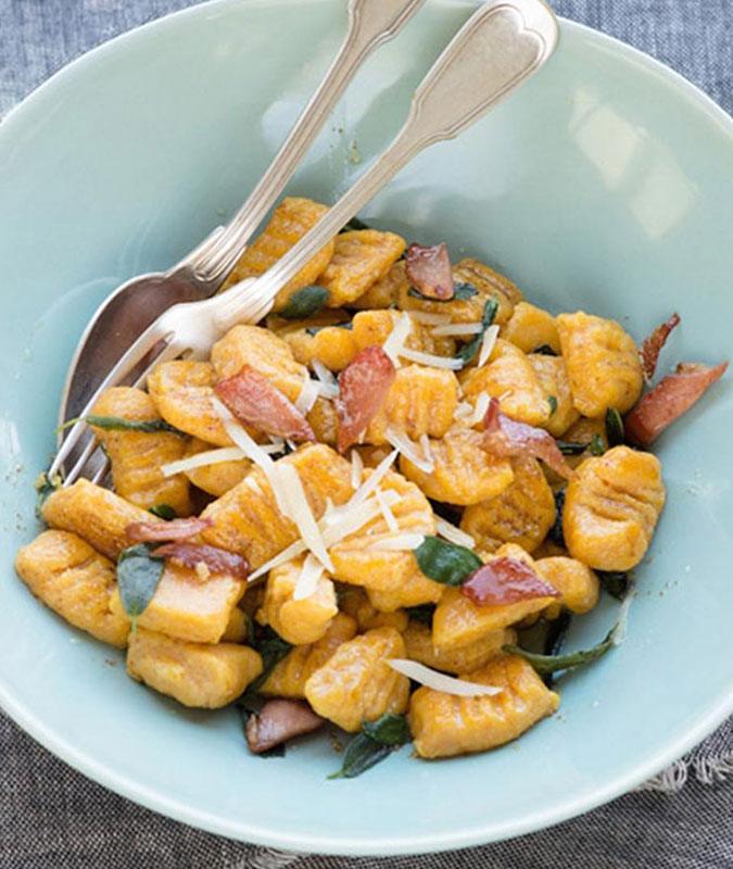 This short and plump Italian pasta is a beloved staple in Italy, where it’s typically made with potato – not the most nutritionally wealthy food. Pumpkin or squash makes a great and delicious alternative to potatoes, adding rich color and nutrients. The trick is baking the squash to avoid adding water to the mix, which would turn these too chewy and gruel-like.