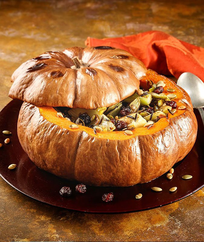 It’s never too early to start thinking about new and delicious Thanksgiving recipe ideas! Perfect for a vegetarian or even vegan Thanksgiving celebration, this is a hearty and beautiful dish that will impress guests with its looks AND flavor. Easily adaptable, the filling can be substituted with quinoa and even farro, or just your favorite grain. And if you want to make it fully vegan, substitute the butter for olive oil and nix the cheese (or use vegan cheese).