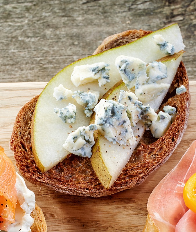 Prosciutto and fresh mozzarella topped with fresh basil and a drizzle of good balsamic. What about caramelized onions and brie? Or figs and Iberico? Goat cheese and pears? Go foraging in your produce drawer and go nuts (which are also a great topping, by the way!). Use fresh or dry herbs for topping – you can also keep our bruschetta spice blend handy, a carefully curated spice mix of garlic, black pepper and sea salt in the perfect proportions. Shop Bruschetta Mix