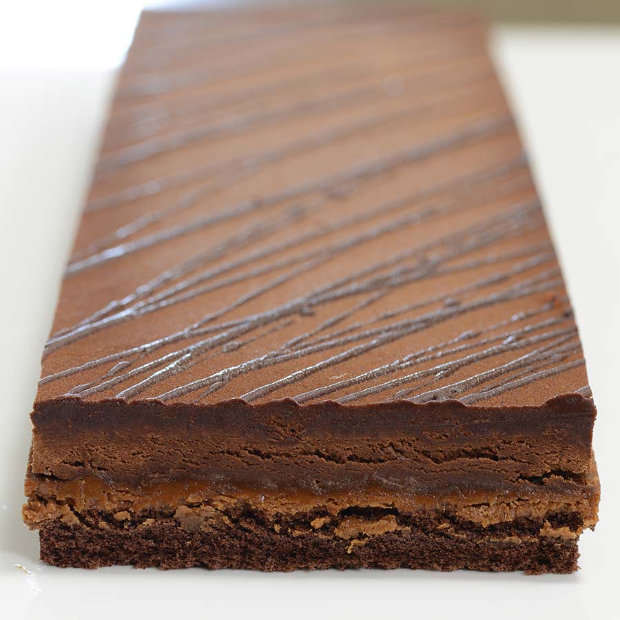 Another detail that adds even more value to this scrumptious dessert is its shape: usually cakes are round, so you either have to get individual-sized cakes or you have to cut the whole cake to serve, but this one (just as an Opera cake) is a long rectangle. This makes it ideal to serve "petit four" style, in small, dainty pieces, or just into individual slices. All you have to do is remove the cake from the freezer and cut into the desired size.
