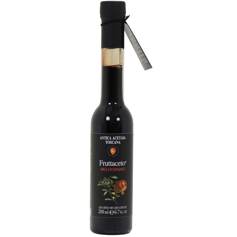 Fruttaceto with PomegranateAdd some sweet fruit flavor to your salads, desserts and even cocktails with Antica Acetaia Toscana's innovative Fruttaceto balsamic vinegar and pomegranate condiment . A blend of sweet reduced grape must, which is used as the base for wine and balsamic vinegar, and concentrated pomegranate juice, Fruttaceto With Pomegranate is the perfect addition to your condiment arsenal.Ingredients: Cooked grape must (76%), wine vinegar concentrated pomegranate juice (6%),natural flavorAvailability: Usually ships within 1 business days. Product is non-perishable and can ship via Ground service. Origin: ItalianTypes of Vinegar: Fruit Based Vinegar
