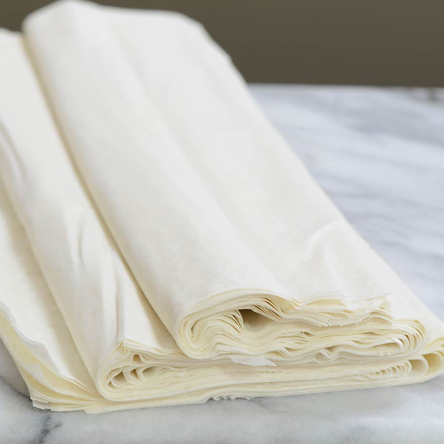 Filo has been a popular form of pastry for centuries. An unleavened dough it’s rolled into impossibly thin sheets, also called ‘leaves’. Derived from the ancient Greek word ‘phyllon’ meaning leaf, the similarities are easy to spot. Thin and crisp, filo shatters and breaks just the way a dry leaf might, and even its light golden color brings to mind the bright leaves of autumn. Phyllo, fillo, or filo, no matter how you choose to spell this delicious pastry, you’re sure to love its delicate, shatteringly crisp layers.