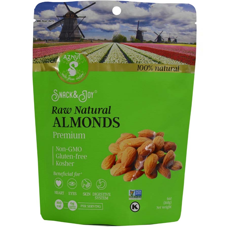 Aznut’s raw almonds are some of the finest on the market. Sorted and selected by hand, Aznut takes special care to ensure that only the largest sweetest almonds make it into your bag, discarding any nuts that appear to be dull or damaged. Sweet, meaty, and never bitter, Aznut’s raw almonds are full of healthy vitamins and minerals! Packed with protein, healthy fats, fiber, Manganese, Vitamin E, Copper, and Riboflavin, almonds are some of the healthiest foods in the world. The long list of minerals and vitamins inherent to the almond include several that the body does not produce on its own (but are vitally important to its healthy functioning), making almonds some of the most nutritionally valuable foods available!
