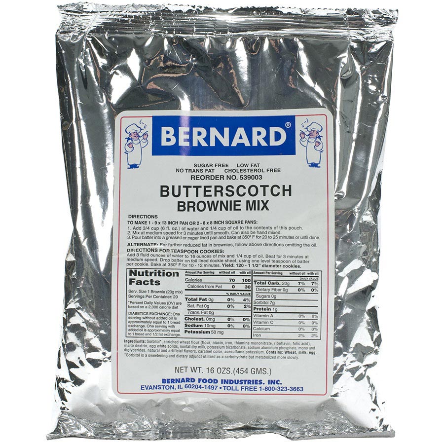 A delicious sugar-free brownie mix that doesn't taste like it's sugar-free? Yes, it's possible! Bernard's moist Sugar Free Butterscotch Brownies are a treat to make and to eat, and won't send your blood sugar spiking. Served in hotels, cruise ships and restaurants, Bernard's Butterscotch Brownie Sugar-Free Mix is also cholesterol free and low fat, and makes 1 9 x 13 inch pan of delicious brownies.
