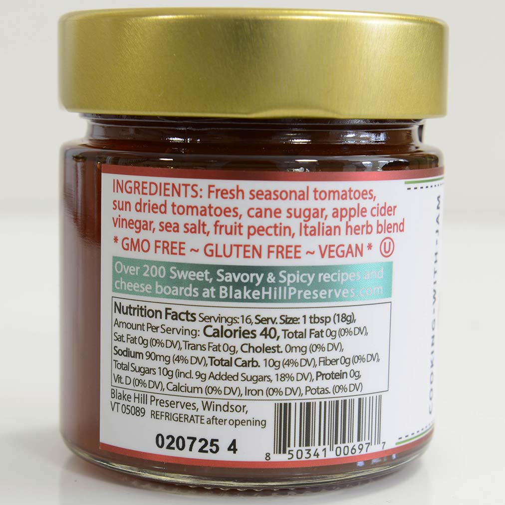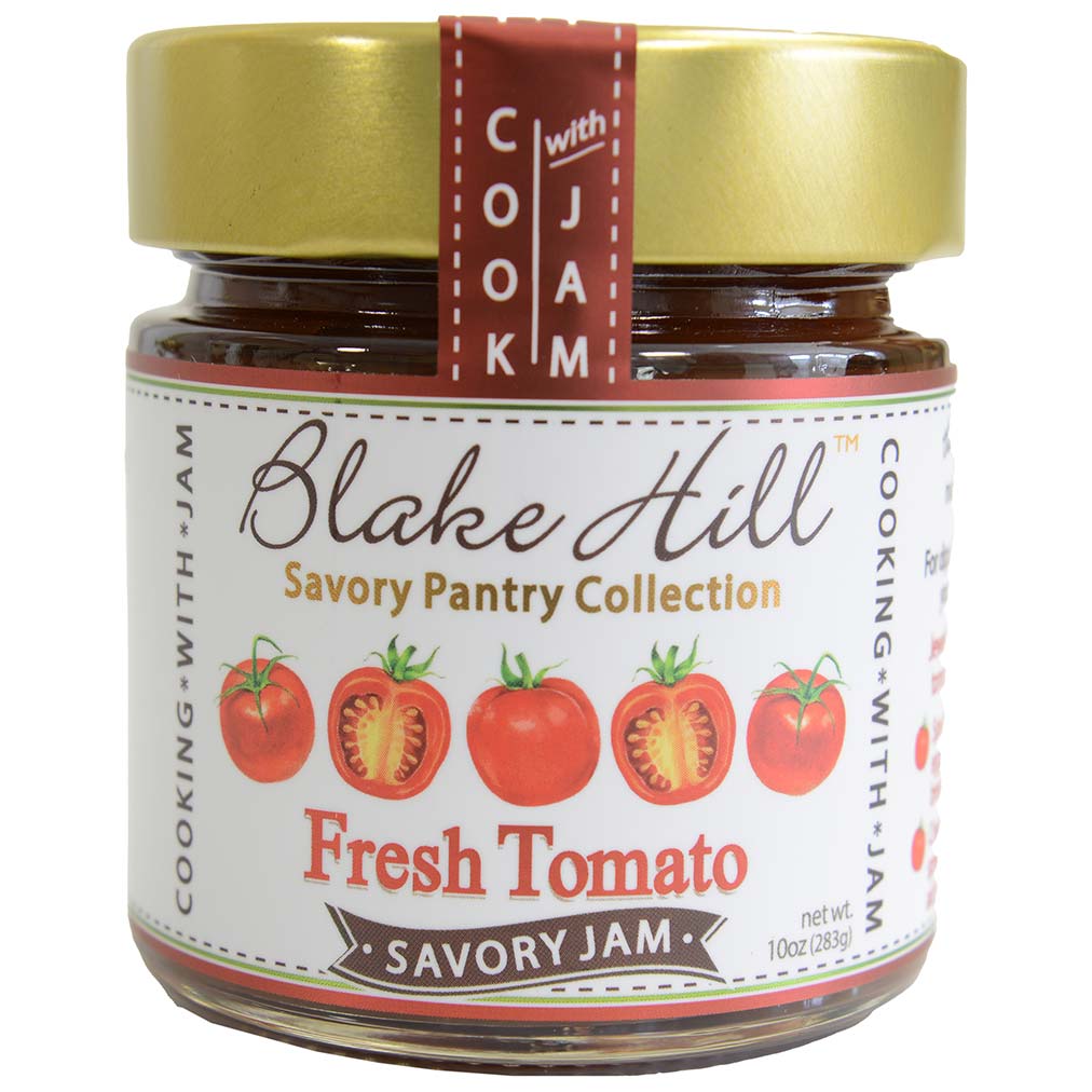 Blake Hill’s Fresh Tomato Savory Jam brings out the naturally sweet, ripe flavor of tomatoes with a savory twist. This jam is bright, tangy, and just a touch sweet, with layers of spices that make it an incredibly versatile condiment. Why you'll love it: spread over toasted bread, it makes for the most delicious and easiest bruschetta! Use it as a condiment for burgers and sandwiches - it kicks all the flavors up a notch or use it for glazing meats like pork or chicken, for a sweet-savory touch. For cheese lovers, it's a wonderful partner to aged cheeses like Manchego or Parmigiano-Reggiano. Whether used as a spread, glaze, or even a pasta sauce base, this savory jam adds depth and complexity to your favorite dishes.