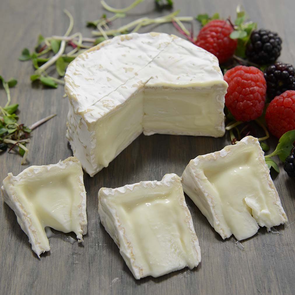 An American chevre, each wheel captivates with its rich, buttery flavor and earthy mushroom undertones. The soft-ripened nature of Lake Effect Cheese is complemented by its bloomy rind, which contributes to its distinctive texture and appearance. Initially firm, the cheese gradually softens as it ages, developing a cream-line just beneath the rind. This transformation creates a beautiful contrast between the creamy interior and the slightly firmer outer layer.