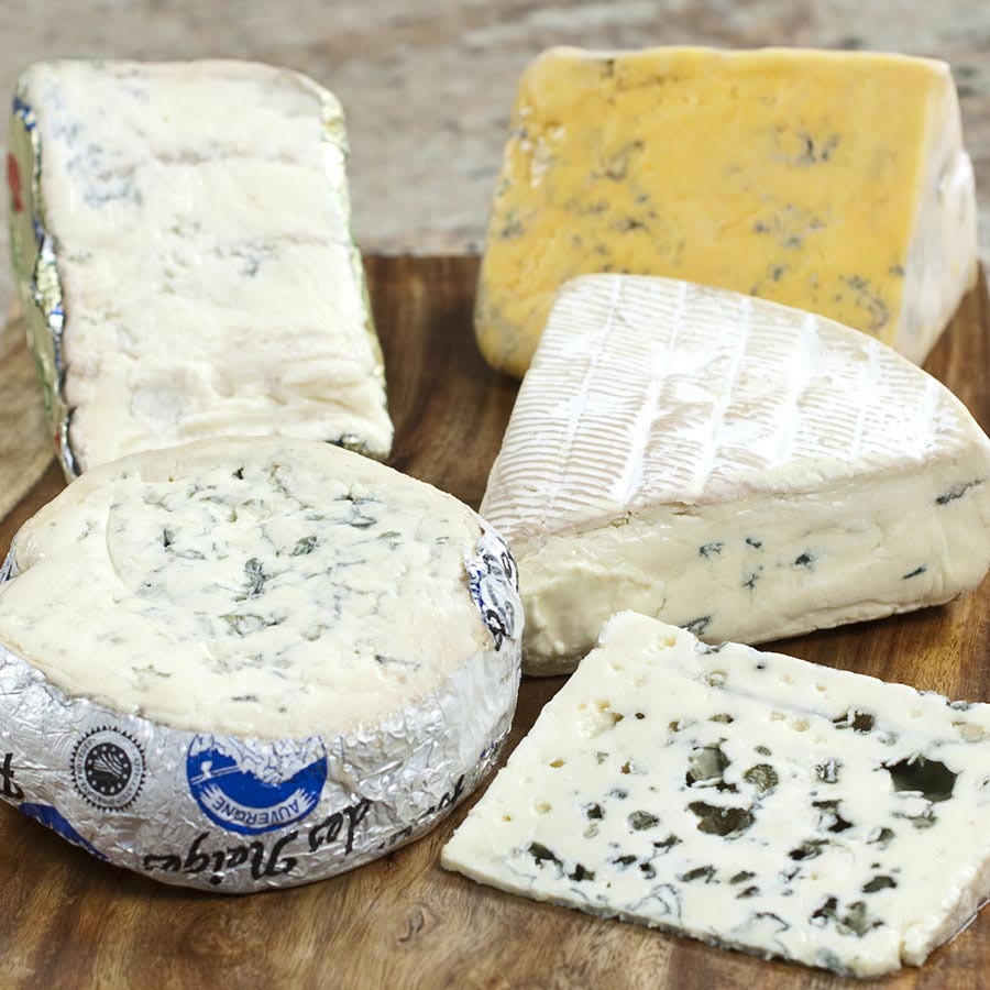 Blue Cheese SamplerSome people prefer strong, intense flavors, and this sampler is just the thing for them. It includes: 1 lb of Cambozola Triple Cream - a mil blue with tons of creaminess. 1 lb of Bleu D Auvergne AOC 50% 1 lb of rich cave-aged Fourme D'Ambert 1 lb of Danish Blue Cheese 1 lb of Shropshire Blue, an English super-creamy intense blue cheese. Availability: Usually ships within 1 business days. Product is perishable and must ship via Overnight service.