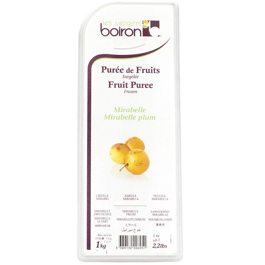 Mirabelle Plum PureeDark, bittersweet and deliciously versatile Mirabelle Plum puree made from meticulously selected Mirabelle plums, made with a pasteurizing process of rapid heating and cooling that preserves the fresh taste and color. Defrost the puree in the refrigerator for 24 to 48 hours before using, or in the microwave at moderate temperature. No added sugar! Use them to create delicious cocktails, smoothies, and pie fillings.Ingredients: Mirabelle plum 100%Availability: Usually ships within 1 business days. Product is perishable and must ship via Overnight service. Type: Fruit PureeBrand: BoironFlavor: Mirabelle Plum