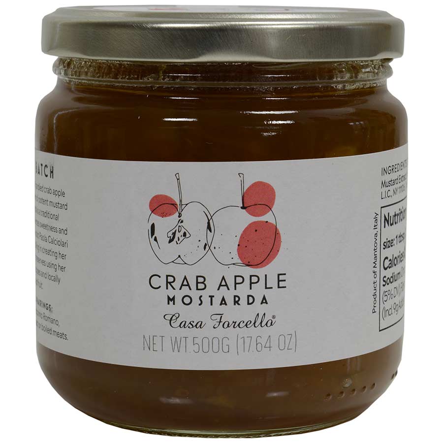 Crab Apple Mustard (Mostarda)Ingredients: Crab apple 52%, sugar, lemon, mustard extract.Availability: Usually ships within 1 business days. Product is non-perishable and can ship via Ground service. Types of Condiments: Jellies and CompotesOrigin: Italy