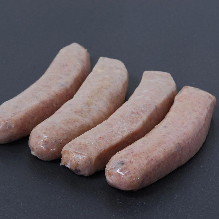 Ingredients: Chicken, Apples (apples, suplphur dioxide), cranberries (cranberries, sugar, sunflower oil), salt, sugar, spices, flavorings, garlic powder, stuffed in a natural pork casing.