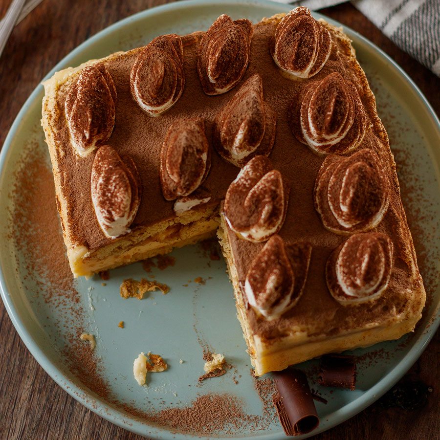 Classic Tiramisu RecipeIngredients 3 egg whites4 tbsp. sugar3 egg yolks¾ cup sugar1 tsp unflavored gelatin powder2 tbsp. water7 oz. mascarpone cream cheese7 oz. whipped cream3/4 cups espresso coffee1 tbsp. dark rum, marsala wine or your favorite spirit16 lady fingers¾ cup cream whipped with 1 tbsp sugar4 tbsp. dark cocoa powderDirectionsMix mascarpone and cream. Reserve.Set a metal bowl over a pot of simmering water at medium-low heat. Important: the bowl should not be in contact with the water. Add the egg whites, and sugar, and whisk with a hand-held electric whisk until you obtain a shiny white meringue. Remove from heat and continue whisking until cooled down. Reserve.Using a new metal bowl (or double boiler), place on top of the simmering pot and add egg yolks and ¾ sugar. Stir constantly, and when it’s hot and very creamy, set aside; be careful not to overcook the yolks.Mix the gelatin powder with the water and warm it in the microwave for a few seconds, careful not to boil. Add to the yolk mix, then add mascarpone-cream mix, and finally the Italian meringue. Mix and reserve.Mix the espresso with the alcohol in a big bowl. Dip each ladyfinger in this mix for one second, then arrange, lengthwise, on a tray or dish. The recipe makes for two small tiramisu cakes, so grab two plates or trays. Repeat so you have 4 ladyfingers arranged on each tray. Cover with part of the cream, then repeat the process with 4 more ladyfingers for a second layer. Cover with cream again, taking care to remove any excess from the sides. Reserve in the fridge.Pipe the whipped cream into peaks with a round or flat medium nozzle, then sift the cakes with cacao powder or add grated chocolate. This recipe is found in:Recipes by Course or Meal: Cake Recipes, DessertRecipes by Occasion: Thanksgiving RecipesRecipes by Season: Spring and Summer Recipes