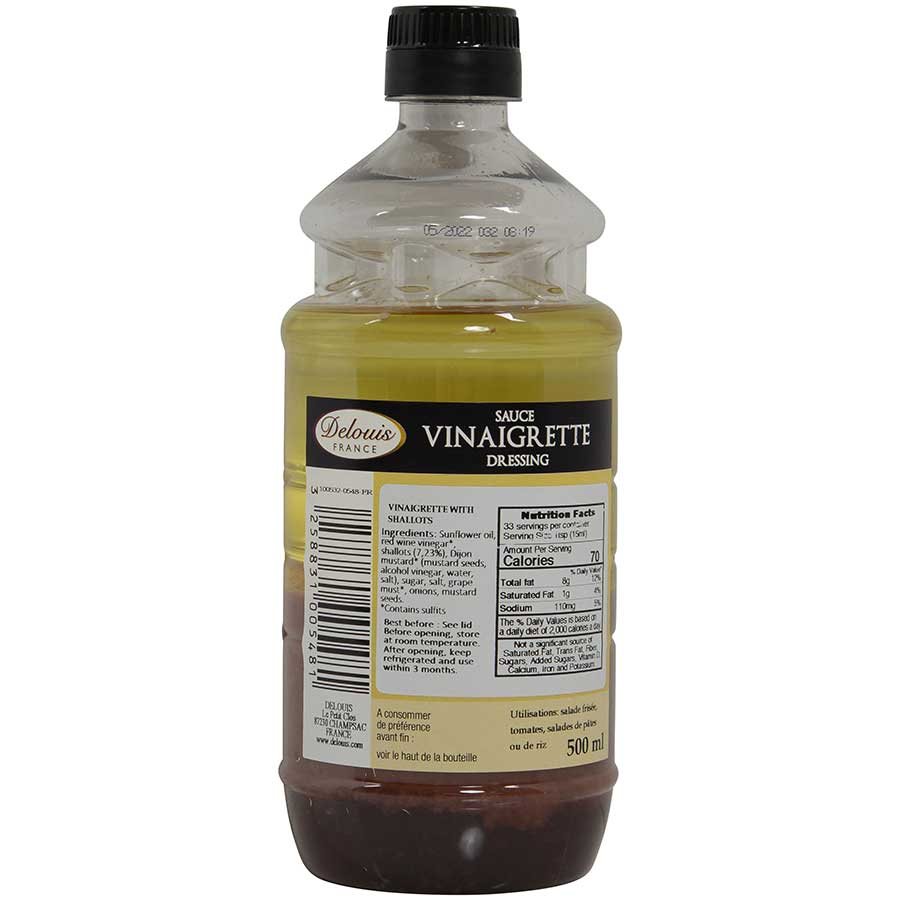 Another tempting addition to Delouis Fils's delightful assortment of condiments, you’ll love this traditional shallot vinaigrette. Easy, adaptable, and above all delicious, you and all your guests are sure to enjoy the flavor provided by this superb dressing. Be sure to always keep a few bottles on hand to quickly infuse your recipes with bold taste!