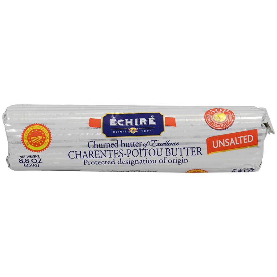 Founded in 1891 Echire butter has been at the forefront of gourmet butter production for centuries. Using time-honored traditions, Echire butter is produced in wooden teak barrel churns, lending it a distinct flavor profile and earning it the title as one of the best butters produced anywhere in the world! our 8-ounce rolls of unsalted butter are a must-have for anyone who bakes and its amazing creaminess and wonderfully nutty flavor will enhance all your baked goods, taking them from good to great!