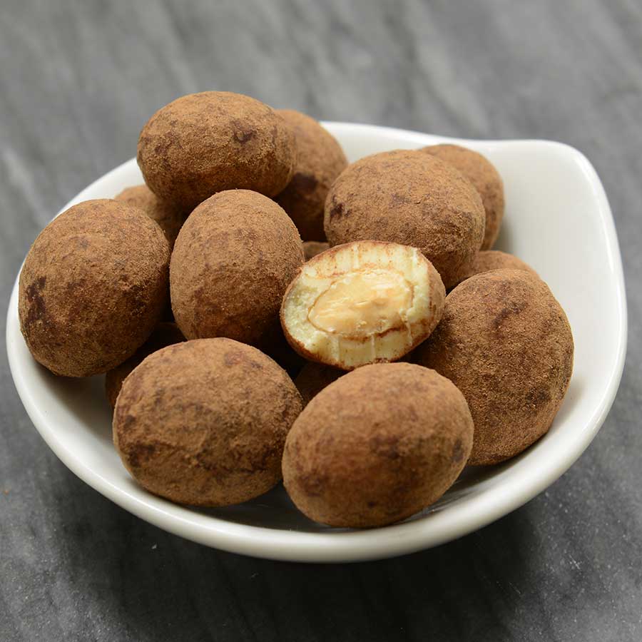 Each of these delightful treats starts with a single toasted Marcona almond enrobed in a generous layer of premium white chocolate and dusted in cocoa powder. A combination made in culinary heaven, each delectable bite starts with creamy chocolate mixed with the bitter complexity of cocoa powder, which gives way to the firm crunch of Spanish Marcona almonds.