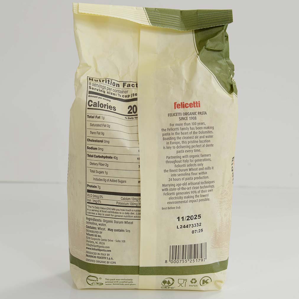 Rigati Pasta - OrganicIngredients: Organic durum wheat semolina, water. May contain soy.Availability: Usually ships within 1 business days. Product is non-perishable and can ship via Ground service. Pantry Categories: PastaOrigin: Italy