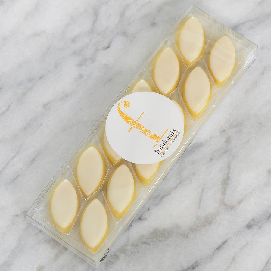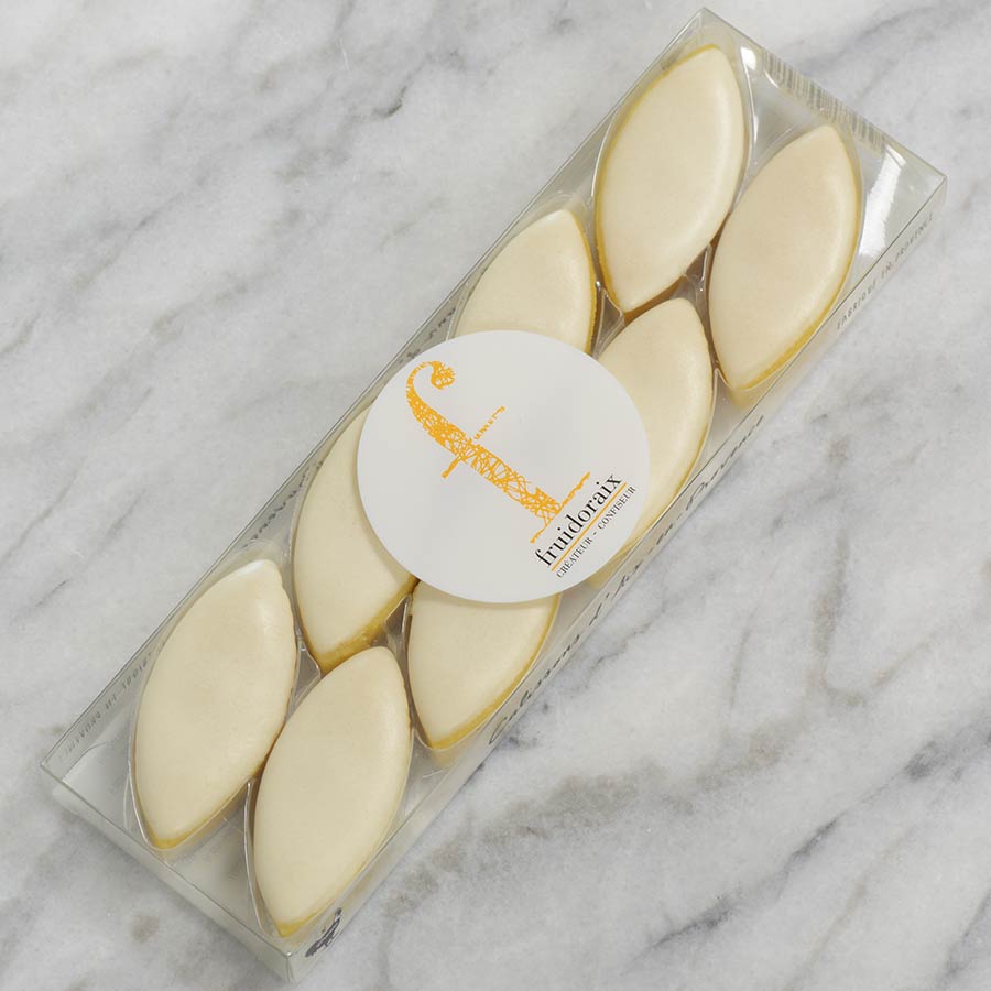 To start with, the only store in the world is in the commune of Éguilles, called Confiserie Fruidoraix. Their recipe is ancestral: these almond-shaped delicacies are part of a family tradition that began in the early 17th century. It’s been four generations of women carrying out the same recipes: mothers passing on gourmet treasures to their daughters, an inheritance that goes beyond genealogy and beyond frontiers, now that we bring them to you straight from France.