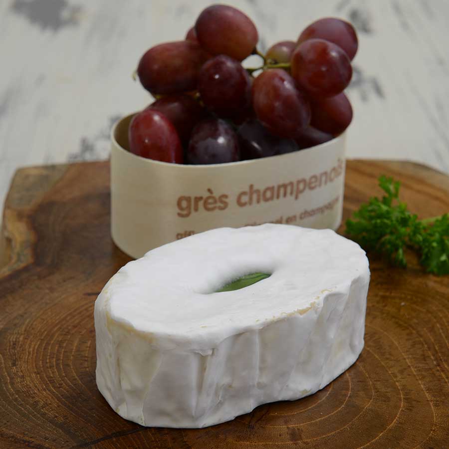 Gres Champenois is the ultimate creamy experience, made by award-winning cheesemongers from France. On a small dairy in the renowned Champagne region, cow's milk is enriched with creme fraiche, and matured for 14 days. A thin white rind develops, encapsulating a smooth-textured cheese that's creamy with a touch of tartness. Packaged in a charming wooden box, this cheese makes an excellent gift, and is sure to delight any lover of creamy, French cheeses.