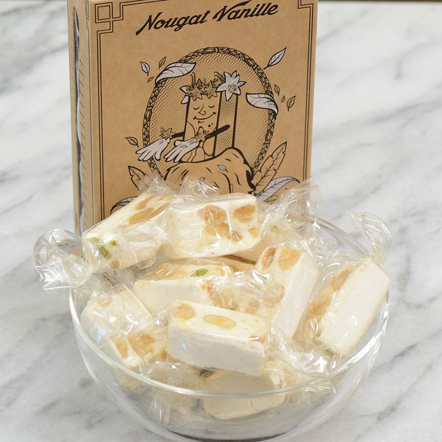 We bring to you a classic candy bar with an original twist, something so special that you would probably get it only in an artisanal candy shop. Now you can have it in your home, shipped overnight, ready to replace your everyday drugstore candy. We invite you to order and savor the lovely Mademoiselle Vanille, a nougat with an extra dash of sweetness, thanks to the added vanilla. And if you’re wondering if it might be over sweet, fear no longer: it has chunks of pistachio which balances the flavors completely.