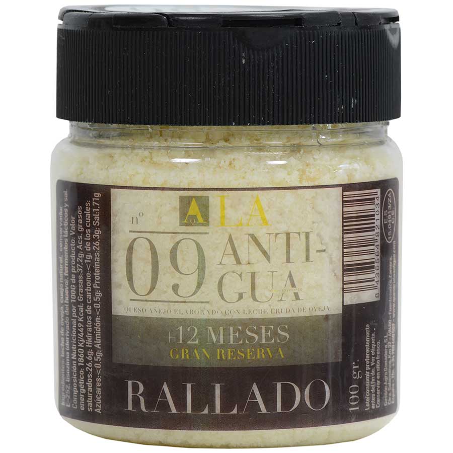 La Antigua’s coveted 12 month aged raw sheep’s milk cheese is brought to you in a practical grated presentation, in a dispensing jar with three different options.