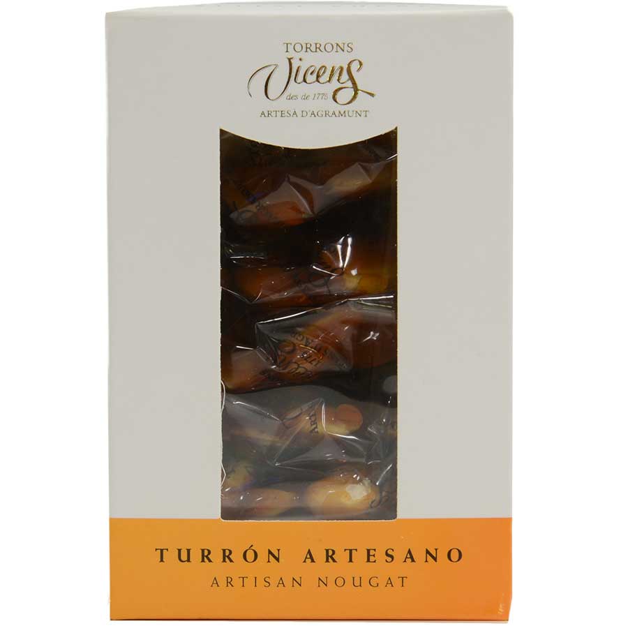 A family-owned company with a long tradition of Nougat making, Torrons Vicens can trace their sweet roots all the way back to 1775. Generation after generation, they have continued to produce some of the finest nougat in Spain using traditional techniques and high-quality locally sourced ingredients. Almonds are first toasted until fragrant and golden, then a caramel made from sugar and honey is cooked until amber in color and complex in flavor before it's mixed with the nuts. Once combined and pressed into a cake, the nougat cools into a firm, crunchy dessert with a flavor and texture you’re sure to love.