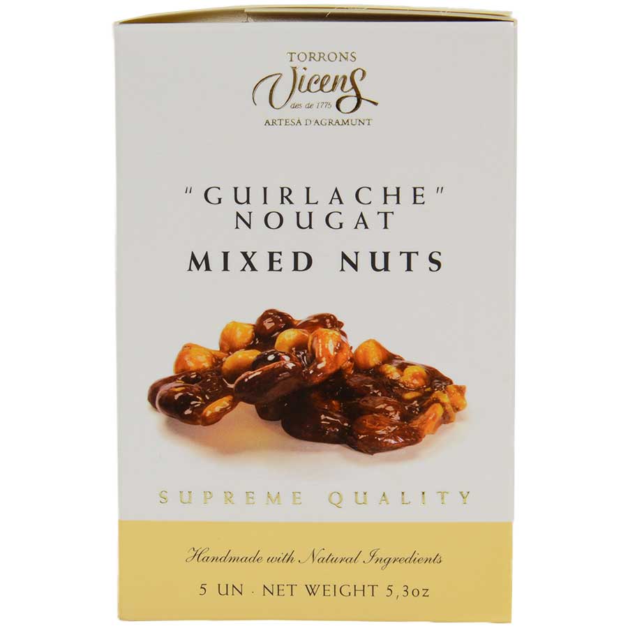 Guirlache is a traditional Spanish preparation that is, in its most basic terms, a nut brittle. While this treat is classically made with almonds our distinctive combination of nuts gives a textural interest and a diversity in flavor you’re sure to love. A must-have during the holiday season or any special event, you’ll find there’s nothing better than sharing a bowl of this indulgent sweet with friends and family. Handmade with all-natural ingredients, Torrons Vicens prides itself on creating some of the finest guirlache turron in all of Spain.