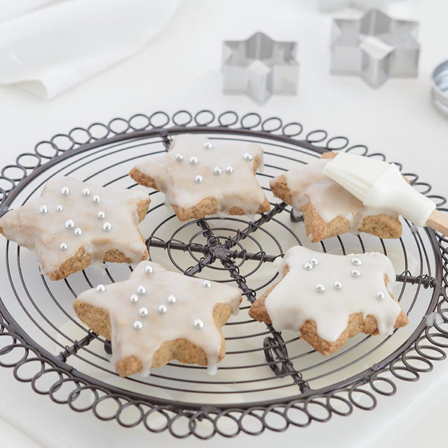 Holiday Cookies Spiced Speculaas RecipeIngredients 8 oz. all purpose sugar1 tsp. cinnamon½ tsp. ground ginger½ tsp. grated nutmeg¼ tsp. ground white pepper2 tsp. baking powder1 tsp. baking soda½ salt4 oz. butter4.5 oz. muscovado sugar2 tbsp. whole milkFinely grated orange zest, from 2 oranges1 cup powdered sugar, sifted1 ½ tsps. boiling water4 drops lemon juice1 oz. almond sliversEdible sugar pearls, optionalDirectionsHeat the oven to 330ºF.In a large bowl mix the butter with the sugar, and add the milk and grated orange zest. Sift in the flour with the baking powder, baking soda, spices and salt. Form the dough ball and press into a flat disc. Cover in film and refrigerate for 30 minutes.Roll out the dough to about ¼ inch thick. Cut out using cookie cutters in your favorite holiday shapes – we used stars. If you want, decorate half of the cookies with shaved almonds. Place in a prepped cookie sheet.Bake for 15 to 18 minutes until golden. Remove from oven, place over a rack and let cool.For the glaze, mix the powdered sugar with the lemon juice and the water until well incorporated. Brush the glaze over the cookies, decorate with edible pearls, and leave to dry.This recipe is found in:Recipes by Course or Meal: Baking, DessertRecipes by Occasion: Holiday RecipesRecipes by Season: Winter Recipes
