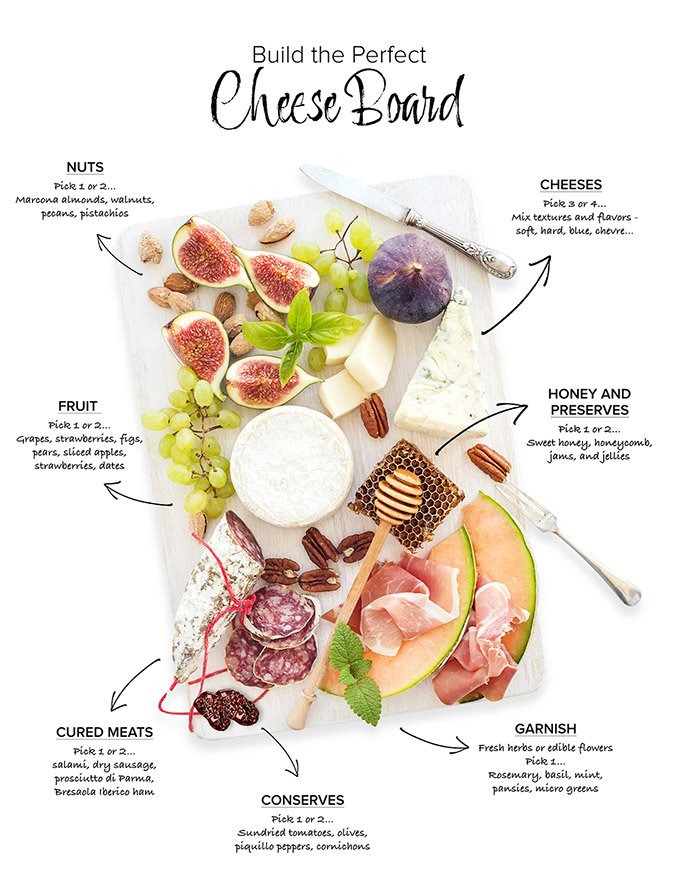 After all, if you’re going to spend the money on good cheese and meat, don’t support it with uninspired pickles and canned olives. Buy a few verdant Hojiblanca olives and a handful of premium cornichons or capers, then dot your tray with the bright red of preserved piquillo peppers to bring color and flavor to your plate! You don’t have to break the bank to make a cheese board as beautiful as a color wheel.
