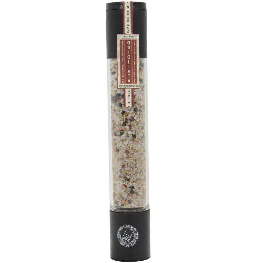 Grigliata Grill Spice GrinderA great blend of Italian spices and herbs designed for grilling. This mix of sea salt, juniper, pink pepper, rosemary, bay leaves, and cinnamon will infuse your meats and vegetables with a deep flavor that will get enhanced during grilling. This pretty grinder will also look fabulous on the table, and is a great option for a gift for the grill master.Ingredients: Sea salt 85%, juniper, pink pepper, rosemary, bay leaves, cinnamon.Availability: Usually ships within 1 business days. Product is non-perishable and can ship via Ground service. Types of Spices: Dried Spices, Peppercorns, Sea Salt & Rock Salt, Spice GrinderBrand: il BoschettoOrigin: Italy