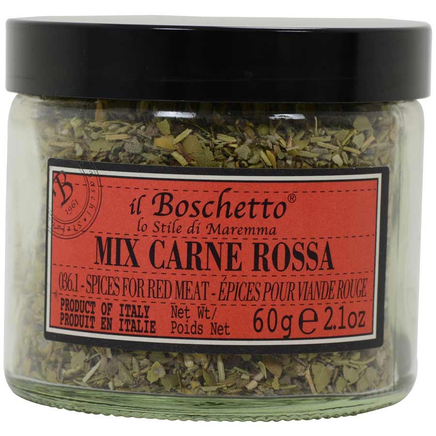 Red Meat Spice BlendNo need to open all your spice jars in order to create the perfect seasoning for your red meat dishes, Il Boschetto has done it for you! The perfect combination of rosemary, sage, bay leaves, thyme, oregano, garlic and sea salt are blended together to bring out the flavor of meats, spaghetti sauces, and any dish that needs a kick of flavor. Sprinkle over bruschetta, salads and even pizza.Ingredients: Rosemary, sage, bay leaves, sea salt (14%), oregano, thyme, garlicAvailability: Usually ships within 1 business days. Product is non-perishable and can ship via Ground service. Types of Spices: Dried Spices, Spice BlendsBrand: il BoschettoOrigin: Italy