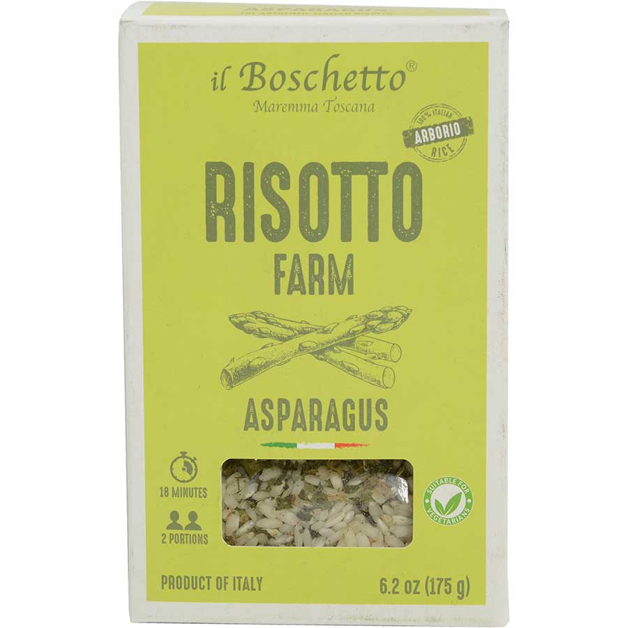 Classic Italian risotto gets an upgrade with the addition of asparagus, onions, and Il Boschetto’s proprietary spice blend. Made with arborio rice for that rich and velvety consistency we look for in a good rice dish, Il Boschetto takes their risottos to the next level by incorporating hand-selected spices and vegetables. Make restaurant-worthy risotto at home in under twenty minutes, with Il Boschetto’s boxed risotto options.