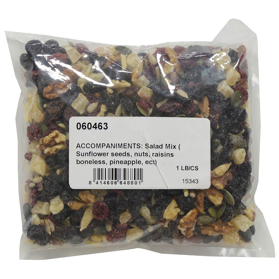 Cocktail Salad Royale is a crunchy, crispy n’ sweet medley of walnuts, pistachios, sunflower seeds, pitted raisins, dried pineapple and red berries. These ingredients are a great source of fiber and will give you a quick energy boost while you’re out and about, making this an excellent trail mix or snack mix. Serve it straight from the pack, or add it to your favorite cereals or desserts. If you’re a really creative chef, you could even incorporate them into homemade brownies, granola or cookies.