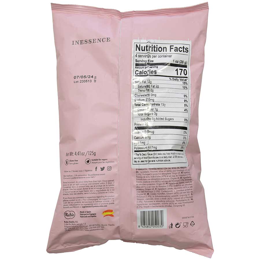 In a world where culinary exploration knows no bounds, Inessence presents a delightful fusion of flavors with their Himalayan Pink Salt potato chips. Sourced from Spain, this gourmet creation elevates the humble chip to new heights of flavor, infusing it with the unique and mineral-rich essence of Himalayan salt.