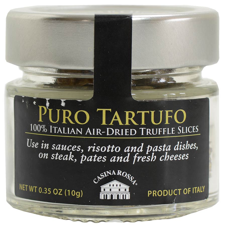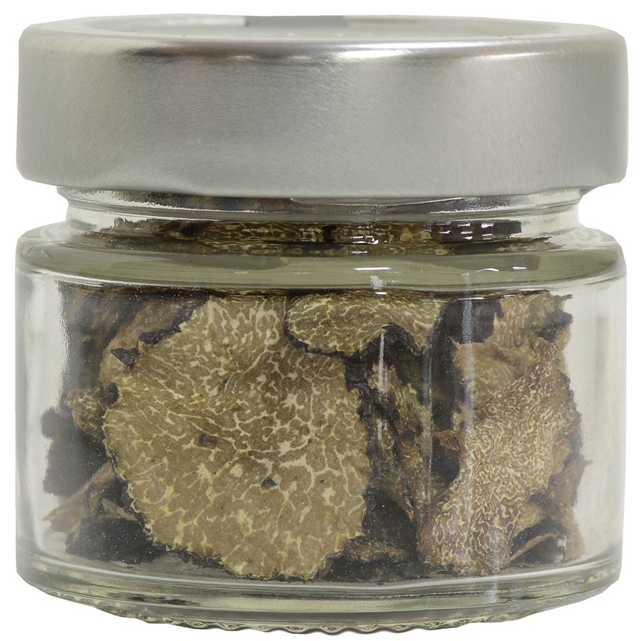 Black truffles from Abruzzo are sliced into perfectly thin slices, air-dried, and then carefully jarred so they stay intact. To use, just re-hydrate the slices with water, broth, milk or cream, or even a meat stock, and add them to the preparation. Use them whole and arrange over grilled or roasted meats, fish or poultry, or use to add flavor to sauces – truffles really shine on butter or cream-based sauces. Add drama and flavor to a cheese board by studding some of these slices on soft and creamy goat cheeses, or toss them into quiche, frittata or scrambled eggs. Chop and add to mashed potatoes or casseroles, or mix with panko and create an incredible stuffing for seafood, like stuffed lobster or crab. Endless and delicious possibilities!