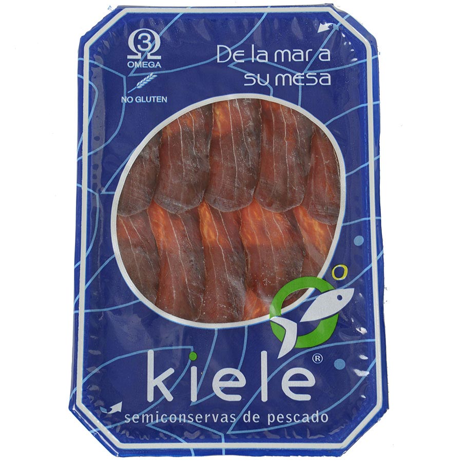 Mojama Fillet in Olive Oil - SlicedLittle known in our shores, the Mojama is wildly popular in Southern Spain, especially in the Mediterranean region. A delicacy of salt and air-cured tuna fillets, from tuna caught and processed using artisan methods. Mojamas in Olive Oil by Kiele are also marinated in fine olive oil for a silky texture and smooth flavor. Traditionally served as a tapa, sliced very thinly alongside toasted almonds, slices of tomatoes and a glass of wine.Ingredients: Tuna loin (Thunnus Albacares), olive oil, salt.Availability: Usually ships within 1 business days. Product is perishable and must ship via Overnight service.