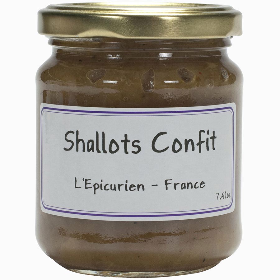 Shallots ConfitWe're huge fans of adding this delicious concoction of caramelized shallots in white wine and red wine vinegar to anything we make, from toast to roast. Produced in the fertile region of Languedoc-Roussillon, ripe with vegetables and fruit, pair this sweet and rich confit with foie gras, cheeses, meats and any other dish.Ingredients: shallots 74%, sunflower oil, cane sugar, Pays c'Oc white wine, red wine vinegar, extra virgin olive oil, modified starch, blackcurrant cream, salt, colour : plain caramel, concentrated lemon juice, spices, antioxidant : rosemary extractAvailability: Usually ships within 1 business days. Product is non-perishable and can ship via Ground service. Types of Condiments: Spreads and TapenadesOrigin: France