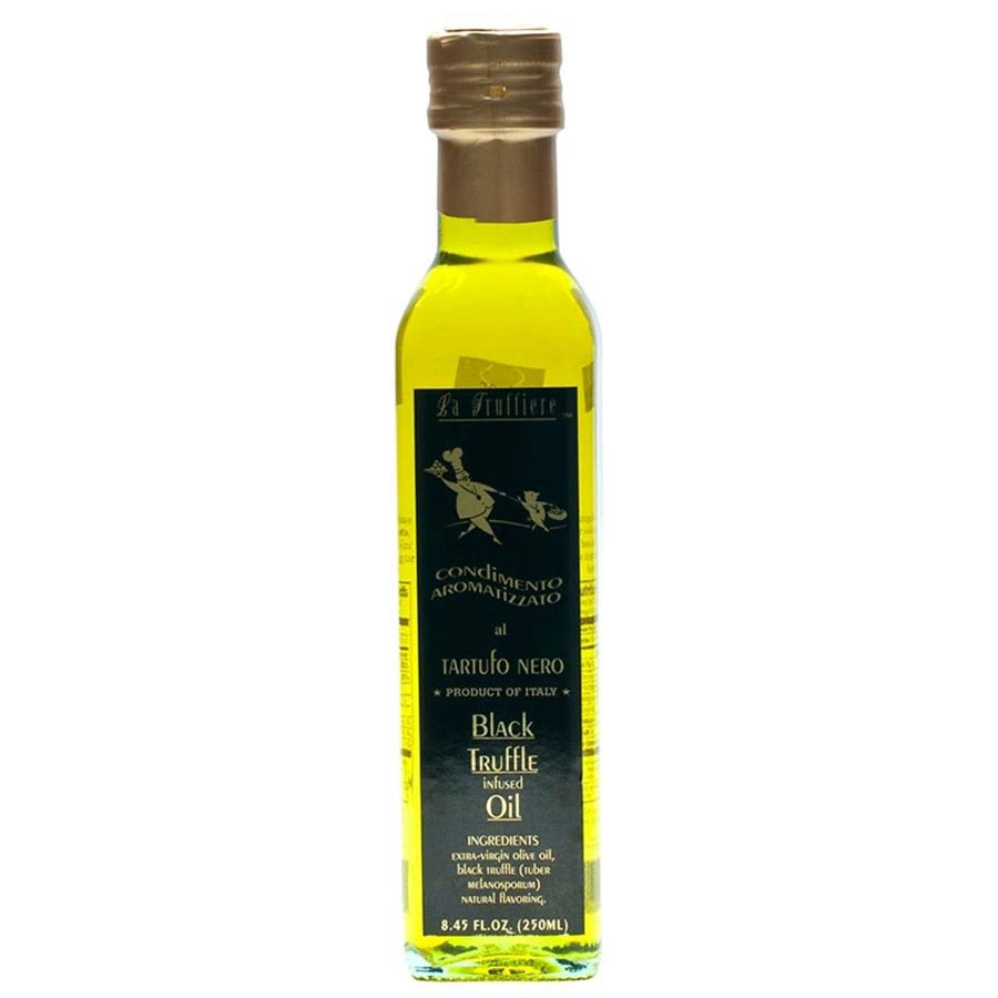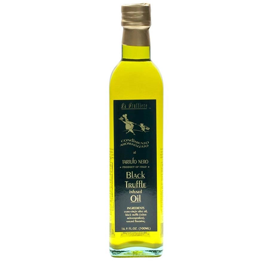 Black Truffle OilIngredients: Extra-virgin olive oil, black truffle flavor.Availability: Usually ships within 1 business days. Product is non-perishable and can ship via Ground service. Product Types: Truffle OilOrigin: Italy