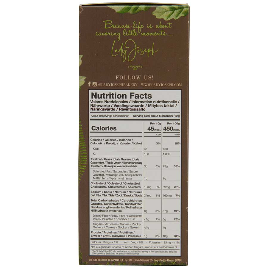 Serve them as an elegant appetizer or pair them with vegan cheeses and spreads for a gourmet tasting experience. Share the luxury with friends and family by gifting these crackers, beautifully presented in Lady Joseph's signature boxes. Elevate special occasions with these crackers, adding a touch of sophistication to your gatherings.