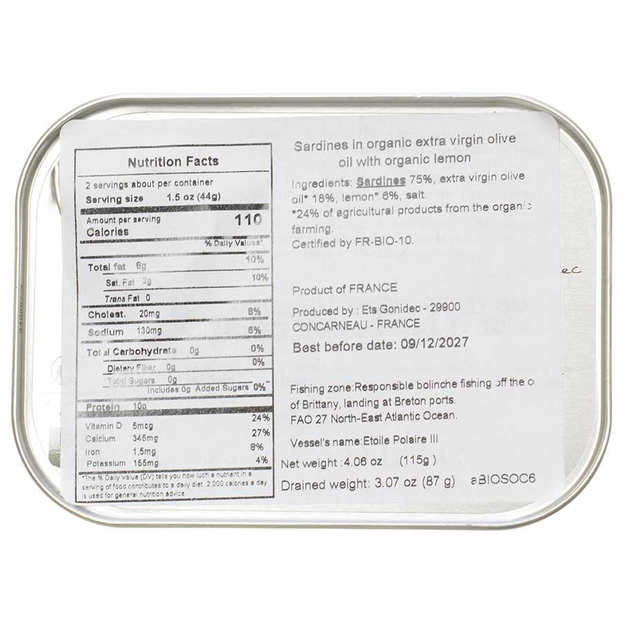 Caught off the pristine coasts of Brittany, these sardines are meticulously prepared by hand to ensure the utmost quality. Gently packed in organic olive oil, which preserves their freshness and imparts a rich, buttery flavor, they offer an authentic taste of Mediterranean cuisine. The additional zest of lemon brings a burst of citrusy brightness, creating a harmonious symphony of flavors that dance on the taste buds.