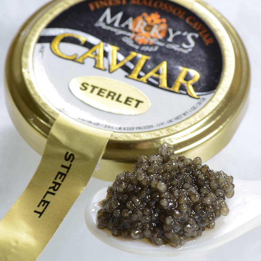Sterlet Caviar, Malossol is farm-raised in Germany from sterlet, the smallest species of sturgeon. These lustrous, gray eggs are small, but they make up for it with their regal appearance and superior flavor. The taste can best be described as earthy, with a slight nuttiness that's never overpowered by saltiness (being "malossol," this caviar is of highest quality, with no preservatives and only minimal use of salt). Some would say it tastes similar to Sevruga caviar, only somewhat brighter and richer. Overall, Sterlet is one of the best caviars in terms of value, since its quality far exceeds its price.
