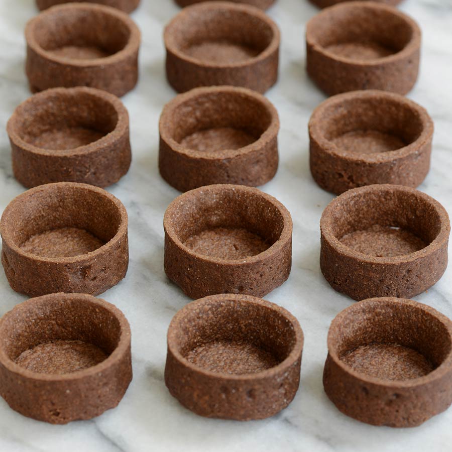 Save time, labor, and ultimately money with these charming pre-baked chocolate tart shells. Crisp and delicious, they strike the perfect balance of rich sweet butter and intense chocolate flavor. Fill them with mousse, ganache, pastry cream, frangipane, or fruits in syrup, for a delightful dessert option.