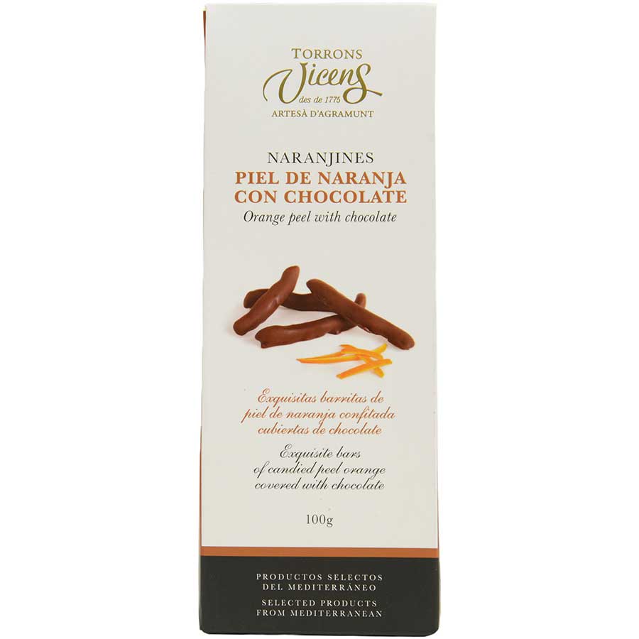 Chocolate covered candied orange peels from Torrons Vicens make the ideal treat for any occasion. Great for gifting, special events, or whenever you’re in the mood for a little something sweet, these chocolate covered orange peels are as versatile as they are delicious. Boasting an excellent shelf life keep them on hand at all times for last-minute entertaining or just a little self-indulgence.
