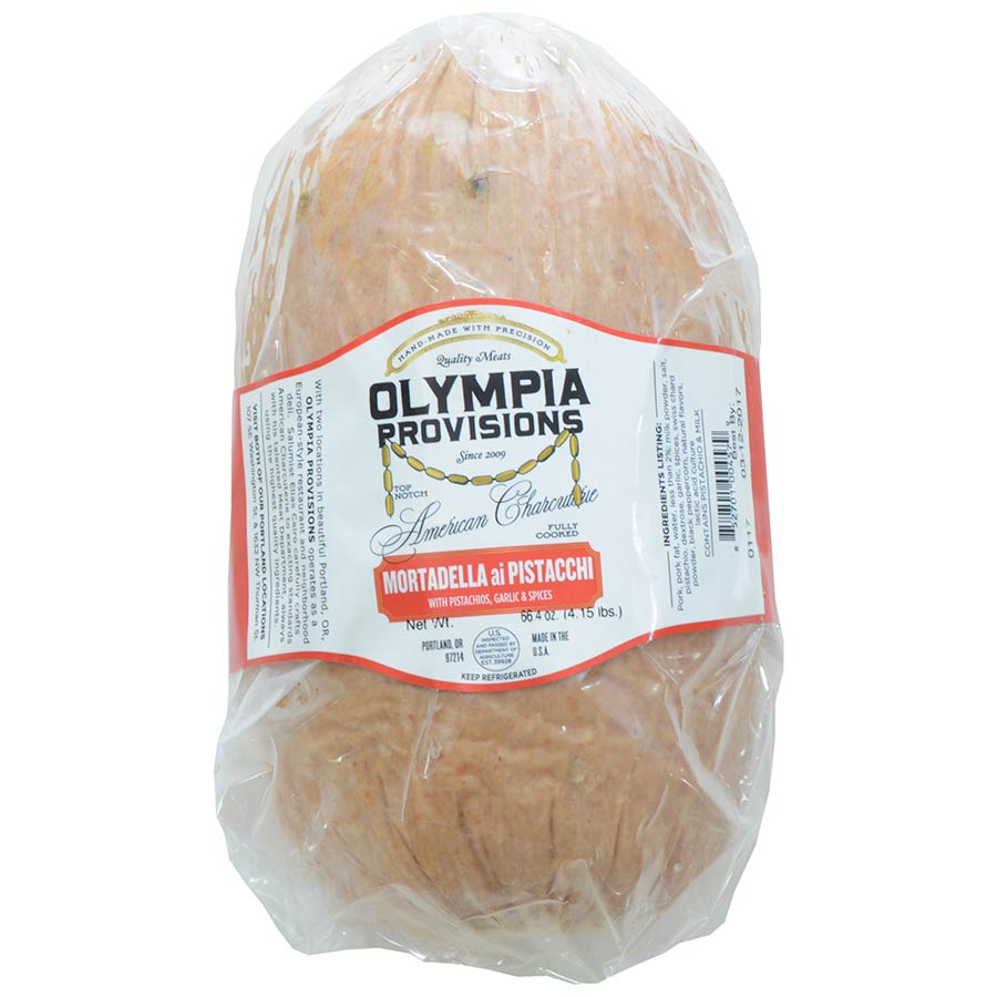 Our classic Italian-style Mortadella is a cut above anything you’ve ever tried. Made in Oregon by Olympia Provisions, this starts with hand-cut pork fatback, studded with meaty pistachios harvested in California, and perfectly seasoned with peppercorns and aromatic baking spices. It has a silky and fatty texture, offset with the crunch of the pistachios, plus a little heat from the peppercorns for a full and flavorful, smooth charcuterie delight.