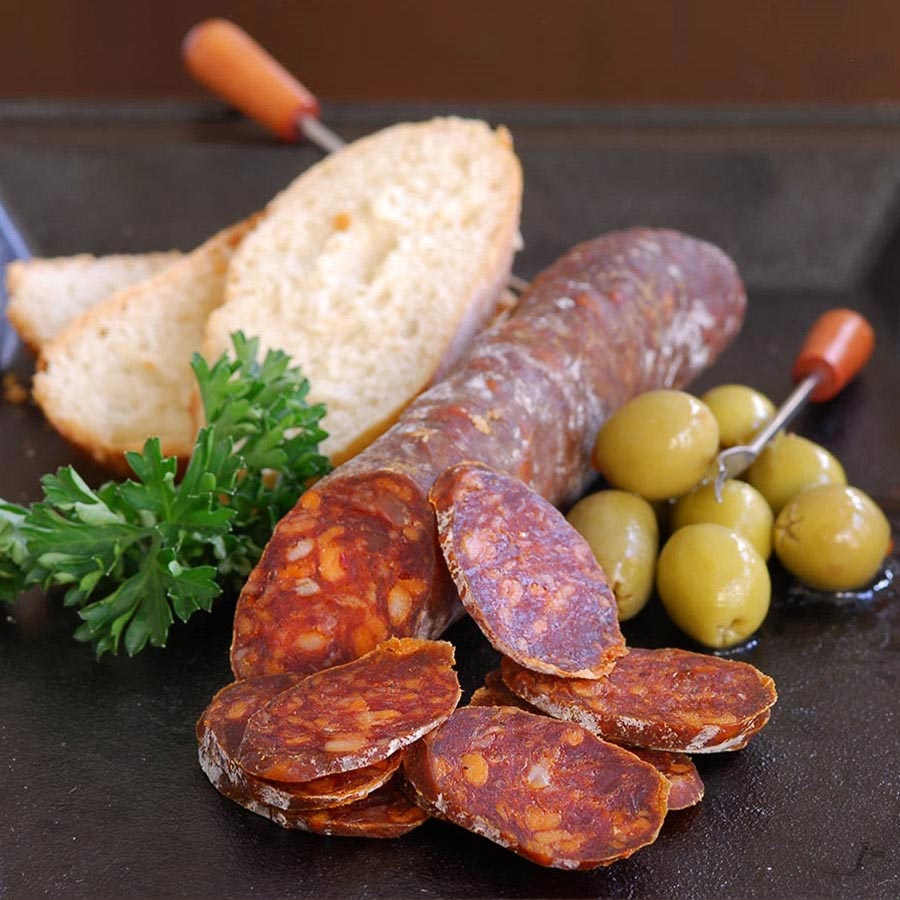 Chorizo Navarre Ingredients: Pork, pork fat, salt. Contains 2% or less of dextrose, garlic, sodium nitrite, sodium nitrate, spices, lactic acid starter culture, water.Availability: Usually ships within 1 business days. Product is perishable and must ship via Overnight service. Smoked/Cured Meats: Chorizo, Salami and Dry SausageOrigin: United States