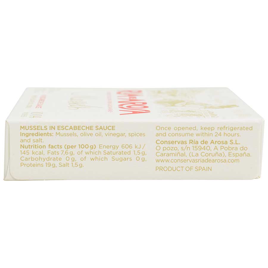 Tender and succulent with a texture that perfectly complements the bold flavors of escabeche sauce try serving these tinned mussels in a wide variety of ways. A perfect classic Spanish tapa, garnished with chopped fresh parsley and accompanied by crusty bread. Incorporate into your seafood paella for an authentic Spanish touch and an explosion of flavor. Add to green, pasta, or potato salads for a zesty seafood twist. From appetizers to entrees the delicious possibilities of these gourmet bivalves are virtually limitless.