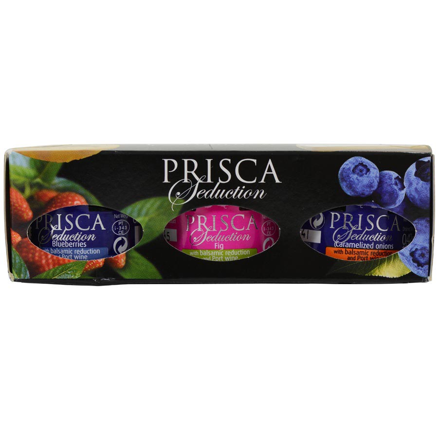 Blueberries, Fig and Caramelized Onions Spread SamplerThis lovely sampler by of spreads by Prisca offers the perfect combination of sweet and savory flavors. Enjoy three delicious spreads perfect to pair with cheeses, meats, foie gras and pates. Includes: Blueberries With Balsamic Reduction and Port Wine, Fig With Balsamic Reduction and Port Wine, and Caramelized Onions with Balsamic Reductions and Port Wine.Ingredients: Blueberries 53.3%, sugar, balsamic vinegar 6.7% and port wine 6.7%. Fig 53.3%, sugar, balsamic vinegar 6.7% and port wine 6.7%. Balsamic vinegar 35.9%, onion 30%, sugar, port wine 8.94% and oil.Availability: Usually ships within 1 business days. Product is non-perishable and can ship via Ground service.
