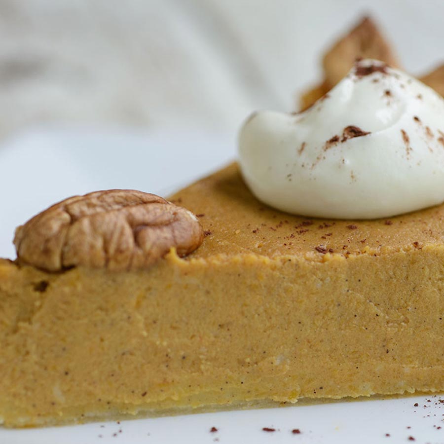Pumpkin Pie RecipeIngredients for the Dough1 ½ cups flour½ cup butter (about 1 stick)¼ cup sugarZest from 1 lemon1 egg yolk4 to 6 tbsps. chilled water1 egg mixed with 2 tbsps. waterIngredients for the Filling1 ¾ cup pumpkin puree (fresh or canned)¼ cups honey¼ cup light brown sugar1 ½ tsp. Cinnamon1 tsp. ginger powder½ cup fresh grated nutmeg3 eggs, whisked with a fork¾ cups mascarpone cheese10 pecan nutsDirectionsIn a large bowl, add the flour and butter. Using your fingertips, mix together breaking up the butter until you get the texture of coarse breadcrumbs.Form an indentation in the center and add the egg, sugar and lemon zest. Form a dough, adding chilled water, one tablespoon at a time as needed.Transfer to a lightly floured surface, forming a firm dough ball without kneading. Flatten into a disc, wrap in plastic film and refrigerate for 30 minutes.Roll out ¾ of the dough and cover a 9 ½ inch pie pan with removable base. Pinch the base and the edges with the tines of a fork. Take to the freezer for 15 minutes.Remove from the freezer and blind bake: cover the base and edges of the dough with aluminum foil or wax paper, fill with beans or baking weights and bake at 375 F for about 15 minutes or until golden. Remove from the oven and let cool.Roll out the remaining dough and cut out diamond shapes, marking them with a knife so they look like leaves. Reserve covered.Mix all the ingredients for the filling in a bowl until well combined, then pour over the pre-baked dough, filling up until the edges of the tart pan.Brush the edges of the tart with the egg and water mix, then place the dough “leaves” over the border, and brush with egg mix. Bake at 375°F for 40 to 45 minutes. To test for doneness, insert a toothpick, if it comes out dry and clean, the pie is done.Remove from oven and let cool. Once cooled, unmold and garnish with pecans.Note: if you notice the pie isn’t done but the crust is starting to turn too dark, remove from oven, cover the border (just the exposed crust) with aluminum foil and continue baking until filling is done. This recipe is found in:Recipes by Course or Meal: DessertRecipes by Occasion: Thanksgiving Recipes, Holiday RecipesRecipes by Cuisine: American Recipes Recipes by Season: Fall Recipes, Winter Recipes