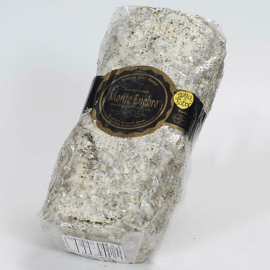 Monte Enebro boasts a unique and complex flavor profile that sets it apart. The cheese is crafted from pasteurized goat's milk, offering a tangy and slightly acidic taste. Shaped into flattened logs in a classic Spanish style known as Pata de Mulo, the cheese is meant to resemble the leg of a mule. Coated in the same blue mold used to create gourmet cheese like Roquefort, this eye-catching layer of flavor adds a salty minerality to the zing of chévre.