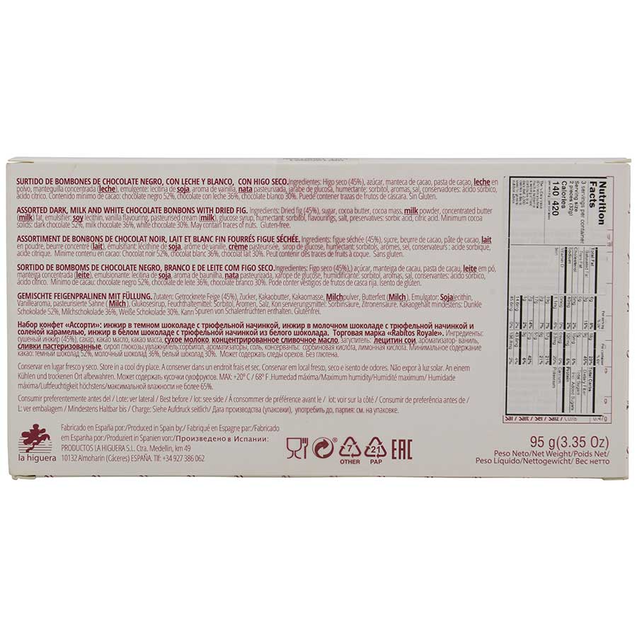 Can’t decide which is your favorite? Why not have them all with this box of assorted chocolate fig bonbons from Rabitos! One of the tastiest treats you’ll ever indulge in, these chocolate fig bonbons are stuffed with creamy chocolate ganache and enrobed in yet more silky chocolate to create a truly opulent dessert. In this assorted chocolate box, you’ll get to sample all three of their classic fig varieties, including milk, dark, and white chocolate bonbons. Individually wrapped and carefully boxed in ornate and beautiful packaging, they make an excellent gift for a friend, family member, or even for yourself.