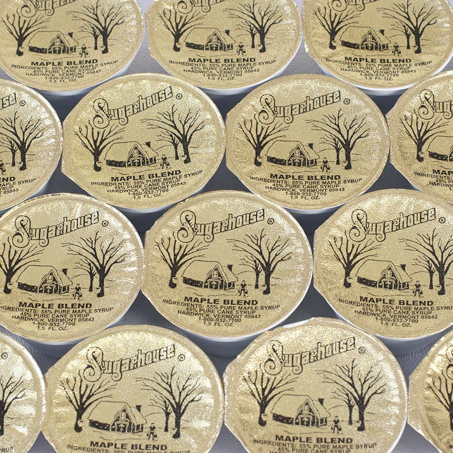 Maple Syrup Blend 55% - Mini Portion CupsThis great blend of maple syrup and pure cane syrup is a flavorful budget alternative for hotels, bed and breakfasts, restaurants and catering companies. The mini cups ensure that not a single golden drop goes to waste. Allergen-free and gluten-free.Ingredients: 55% pure maple syrup, 45% pure cane syrupAvailability: Usually ships within 1 business days. Product is non-perishable and can ship via Ground service. Pantry Categories: Maple SyrupOrigin: United States