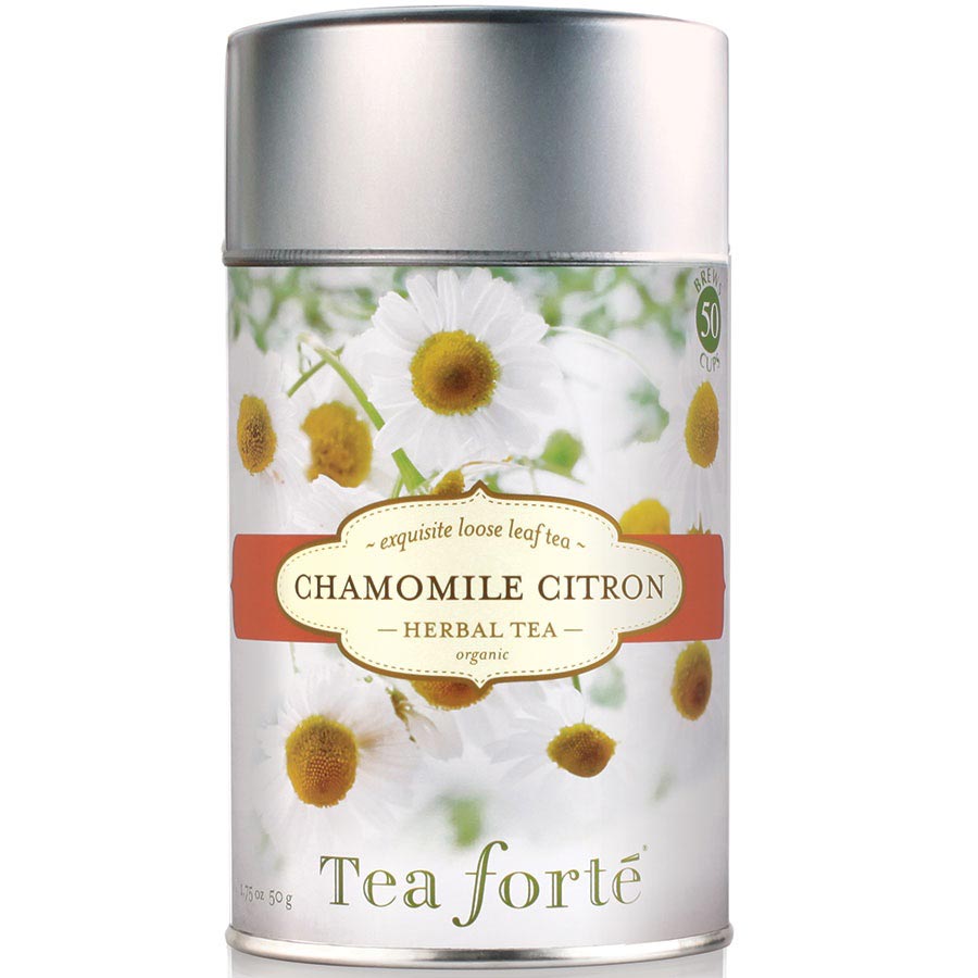Tea Forte Chamomile Citron herbal tea leaves are a creation of Tea Forte. This company began in Massachusetts in 2003, with a highly stylized product line based on traditional Japanese tea drinking ceremonies, intended to “elevate a cup of tea into an extraordinary experience for all your senses.” Today, they present an unparalleled variety of handcrafted teas and tea accessories with sumptuously decorated packaging. Enjoyed in over 35 countries, their products can be found in the most prestigious restaurants, hotels, resorts and luxury retailers, making them ultimate ambassadors of the tea-drinking experience.